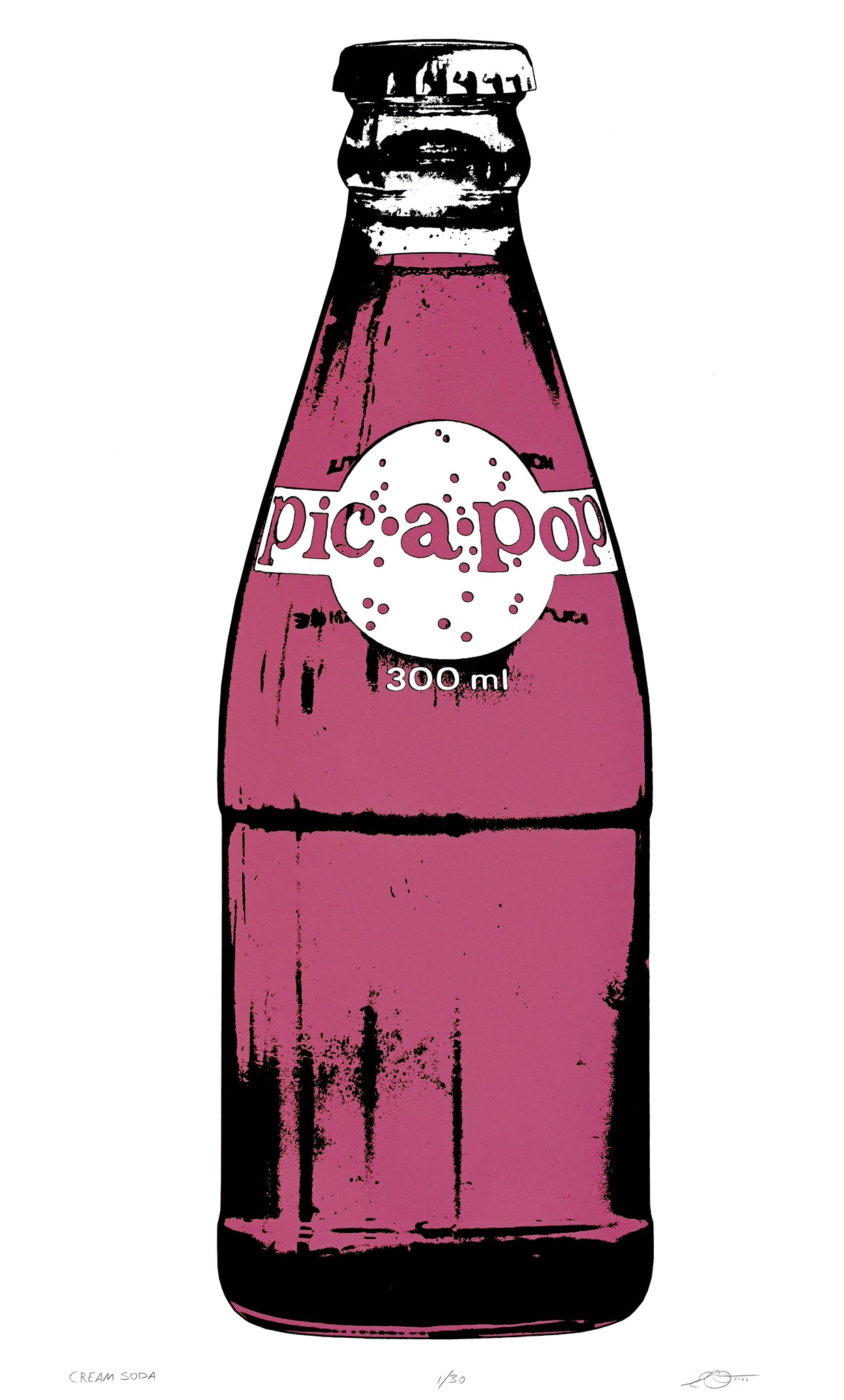 Back by popular demand, complete your series with these three new Pic-a-Pop flavours! Shown/included here is CREAM SODA.   Hand pulled limited edition of 30.
